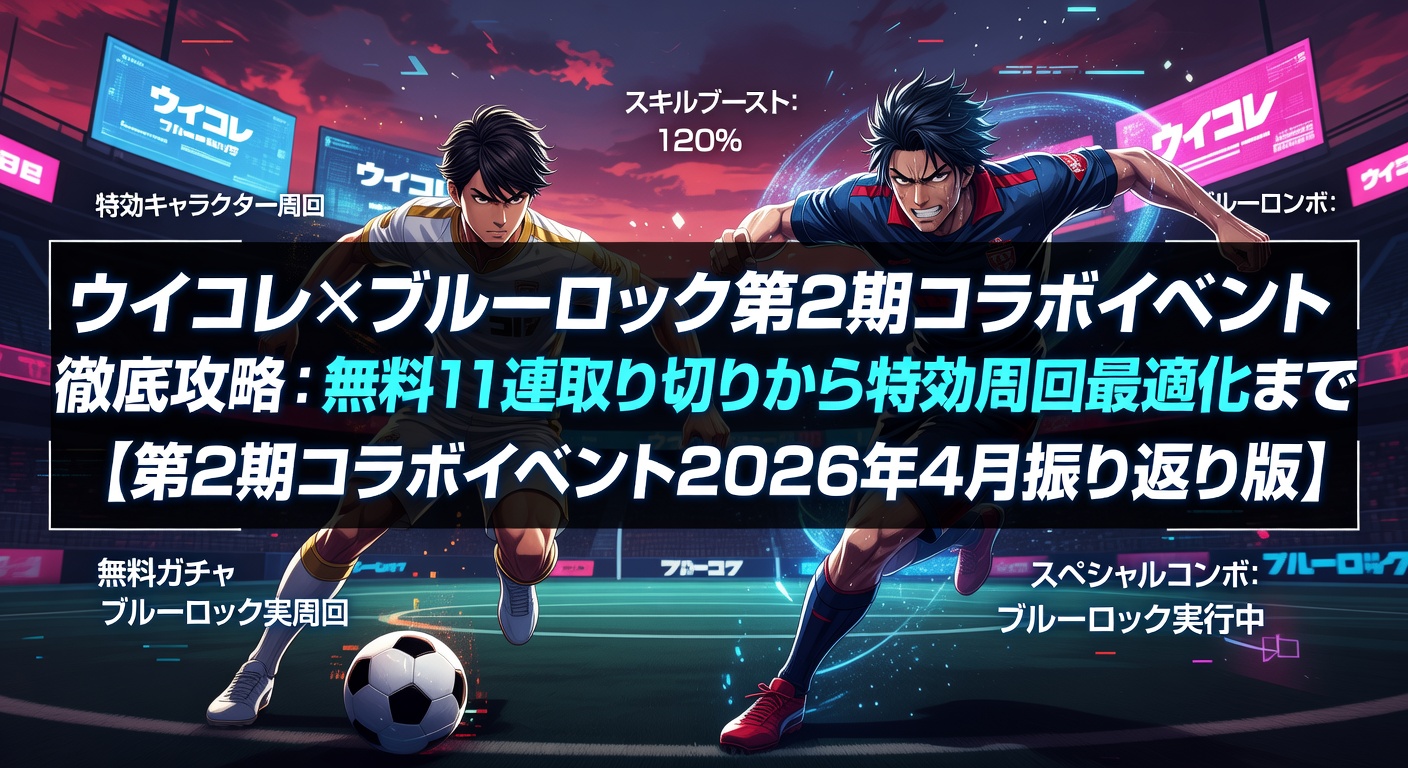 みなさん、こんにちは! ウイコレ攻略日記@六本木FCの管理人です。eFootball™ ウイコレ CHAMPION SQUADS(以下、ウイコレ)の無課金・微課金プレイヤー向けに、日々攻略情報を発信しています。今回は、2026年2月10日から3月10日まで開催されたブルーロック第2期コラボイベントを徹底的に振り返りつつ、攻略のポイントをデータ寄りにまとめます。